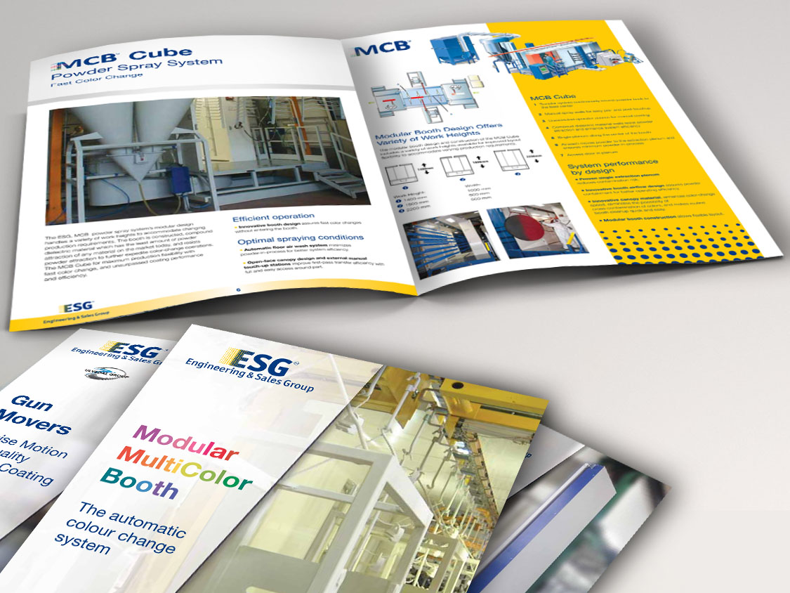 La brochure commissionataci dal Cliente ha lo scopo di illustrare i servizi offerti e di presentare i macchinari venduti, accompagnati da fotografie, descrizioni e schede tecniche. La grafica nell'insieme riprende i colori del logo, così come sono stati utilizzati altri tratti grafici che riprendono la veste del sito internet. La brochure diventa così un elemento di continuità rispetto alla presenza web del cliente, e nello stesso tempo costituisce un mezzo potente di forza vendita.