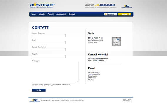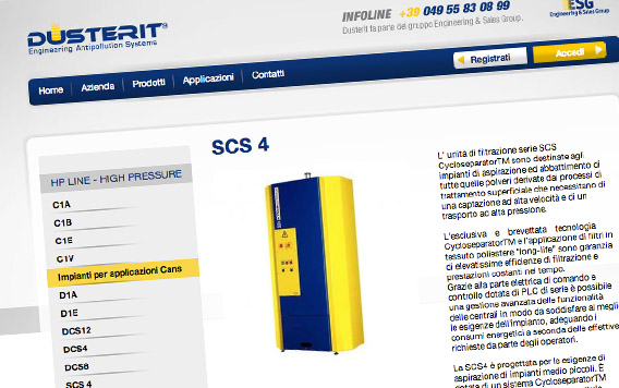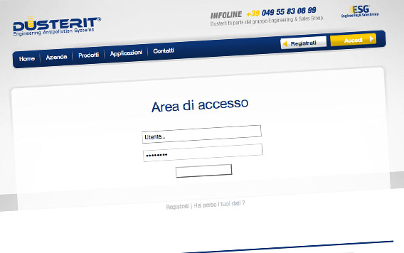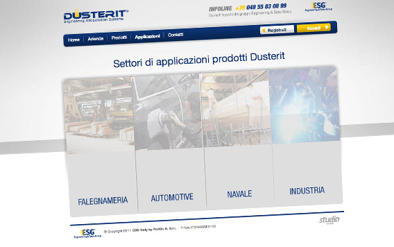 Il sito internet Dusterit è orientato a presentare i settori di attività dell'azienda, in modo da mettere in risalto i principali prodotti e le principali soluzioni per le aziende.