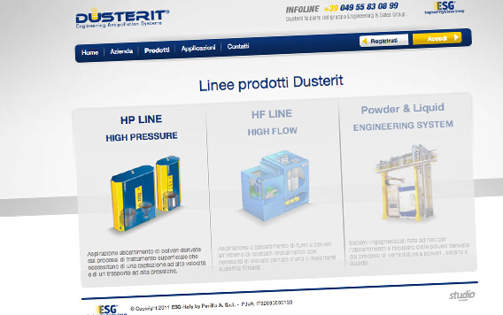Per la realizzazione di questo sito, si è progettato un template grafico che tenesse conto dei settori di attività dell'azienda, in modo che fossero visivamente subito accessibili dall'Utente.