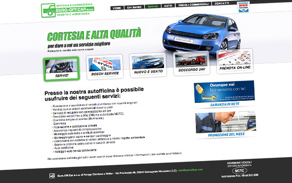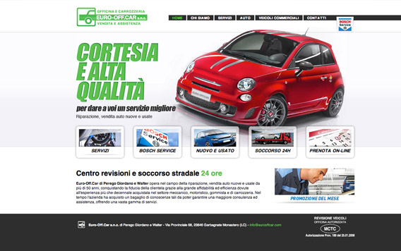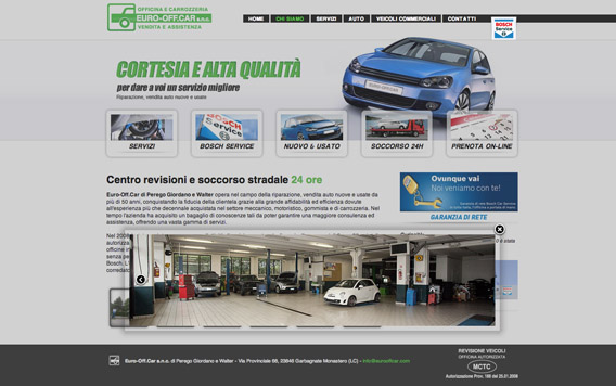 L'impatto visivo capace fornisce un impatto notevole nel complesso dell'architettura del sito, orientata alla presentazione dei diversi servizi offerti dall'officina, in modo tale da fornire una visione d'insieme del negozio all'Utente che approda sulle pagine.