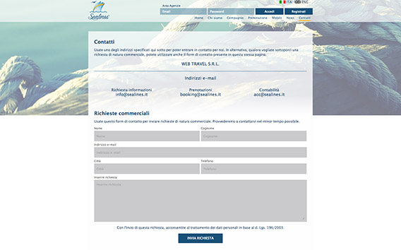 Dal lato amministratore, il Cliente finale è pienamente autonomo nel gestire i contenuti del sito e nell'amministrazione delle prenotazioni o delle richieste effettuate sul sito: è infatti concesso in licenza d'uso il Content Management System Accatre, di nostra realizzazione, appositamente implementato per essere funzionale al sito sealines.it.