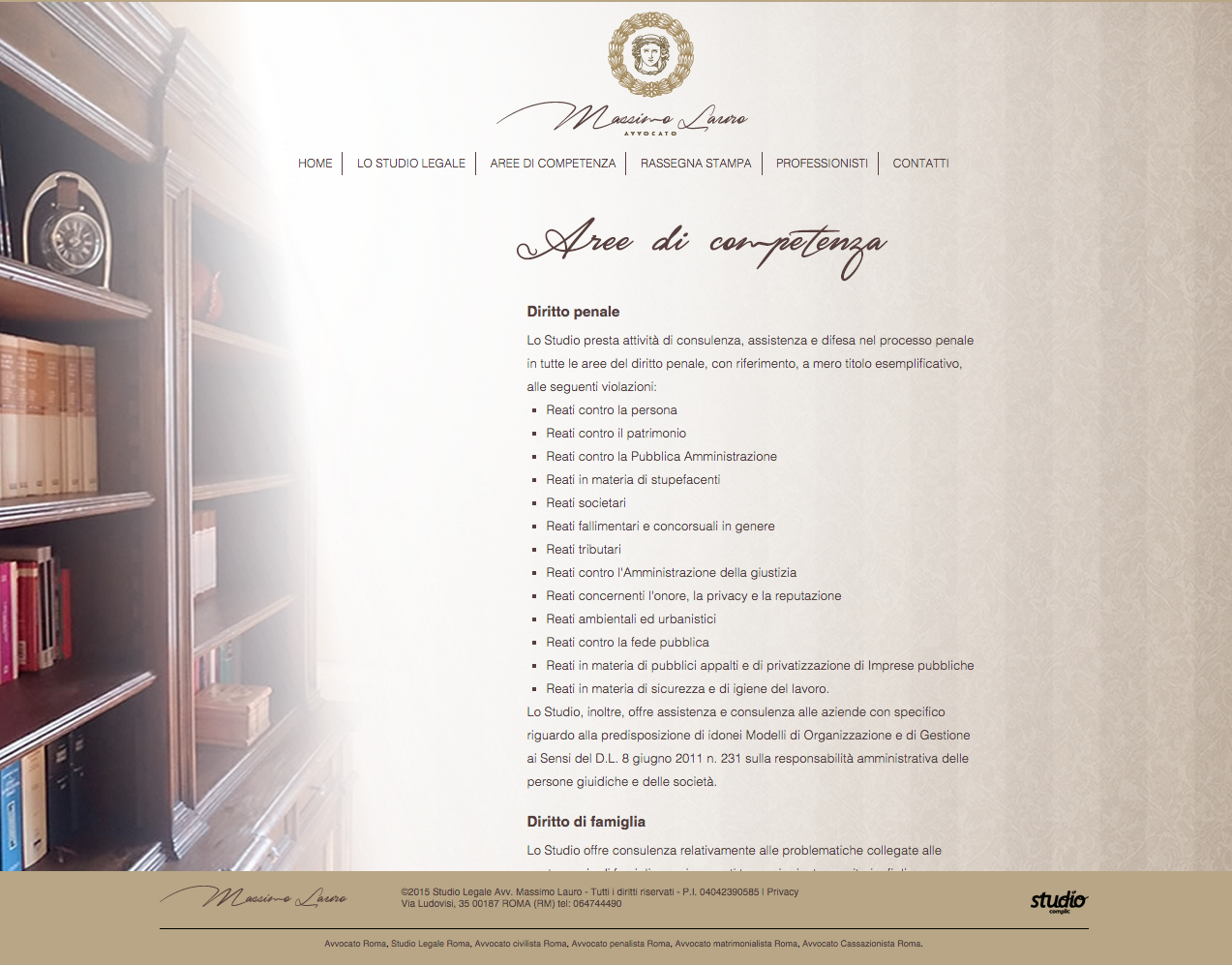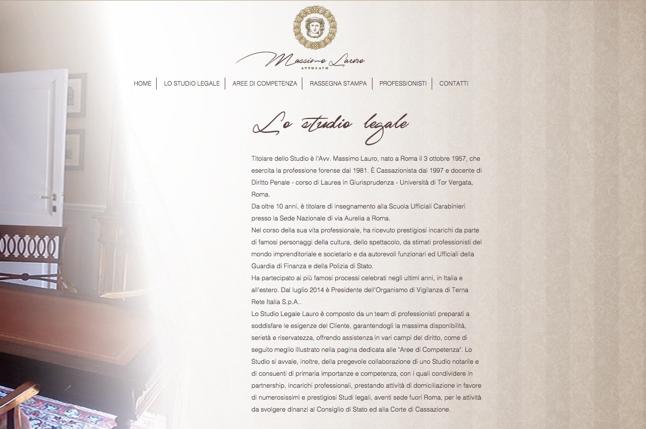 La realizzazione del sito ha preso le mosse dall'esigenza del cliente di presentare agli utenti dei contenuti non stereotipati, ma che delineassero le principali attività dello studio legale. E' stata scelta una veste grafica raffinata, ma senza sfarzi o virtuosismi artistici, con l'obiettivo di comunicare professionalità e serietà . Inoltre sono state scattate fotografie all'interno dello studio che si inseriscono in modo sobrio ma elegante nel layout del sito internet.