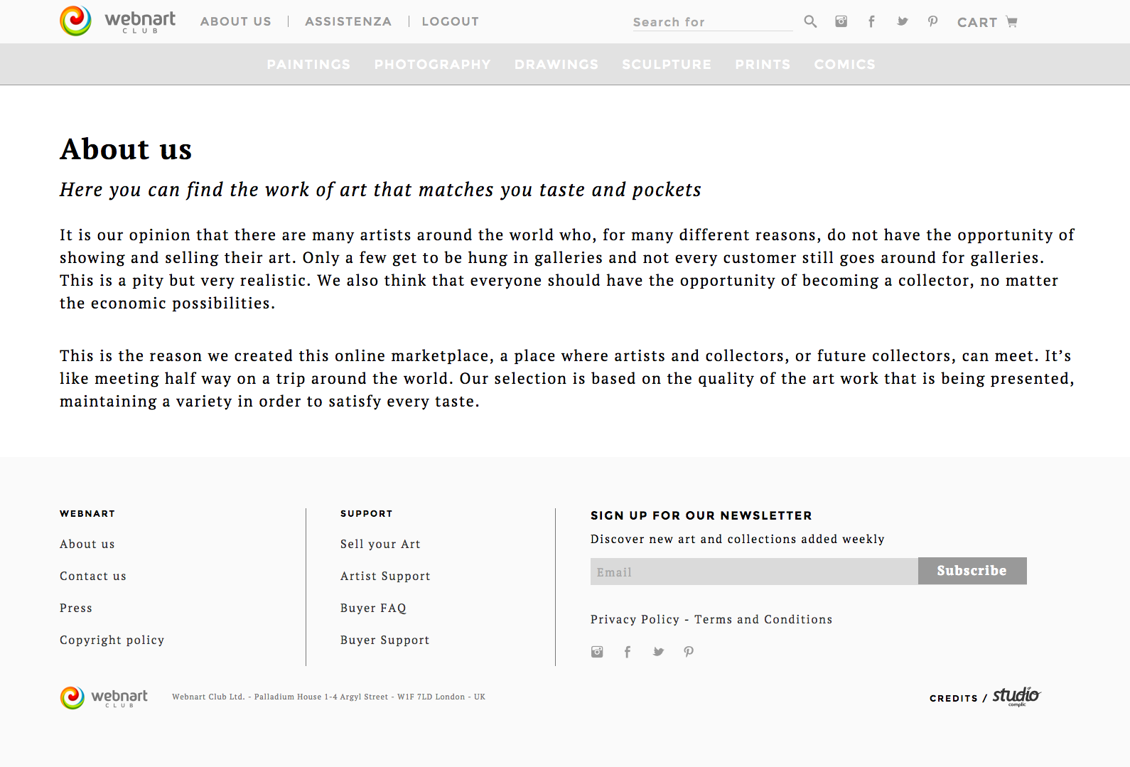 Il sito internet è un punto di incontro per gli artisti che desiderano promuovere le proprie realizzazione su una piattaforma che mette a disposizione i migliori strumenti per trovare clienti e farsi conoscere.